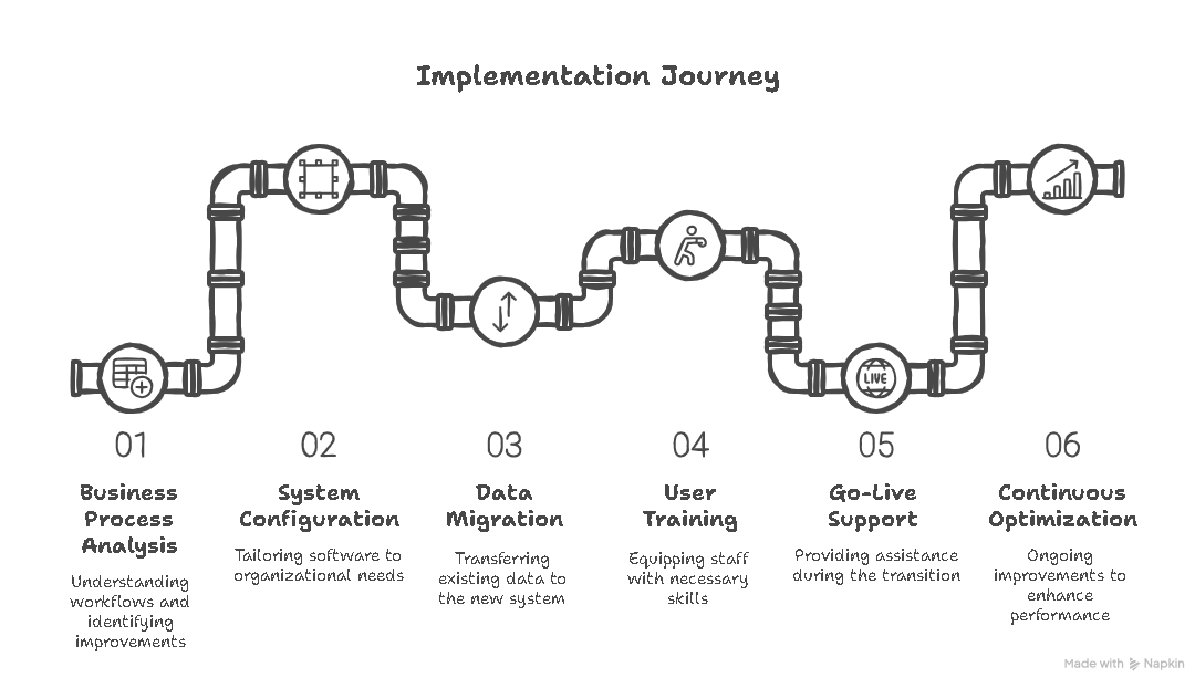 Transitioning to an ERP for furniture industry is a strategic investment that requires careful planning and expert guidance. The implementation journey typically involves:
